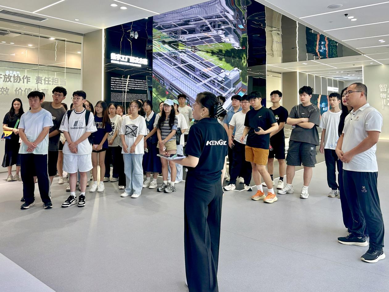 在青岛科捷智能科技有限公司,师生们通过参观智能展厅和仓储生产车间,了解了公司的发展历程、兔子先生、业务范围、核心技术与主要产品,同时详细探究了企业如何通过物流、仓储到整体工厂三位一体的自动化、智能化升级,成功实现精益生产、降本增效和数智化转型的全过程。