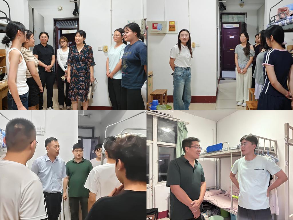 【增进了解,凝聚共识】迎新当日,学院领导老师走访新生宿舍,亲切询问新生集体生活适应情况,并勉励同学们要尽快完成角色转变,适应大学阶段的学习节奏和生活节奏,合理规划大学生活。