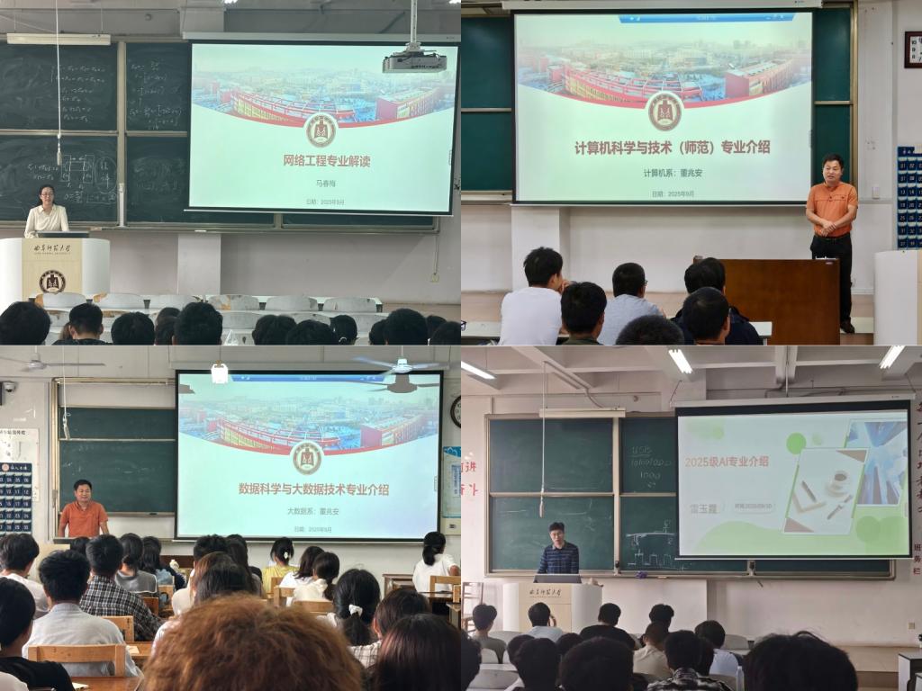 计算机科学与技术、网络工程、数据科学与大数据技术、人工智能四个专业分别举行了2025级新生培养方案解读会,系主任董兆安、雷玉霞、马春梅分别主持了各专业解读会。