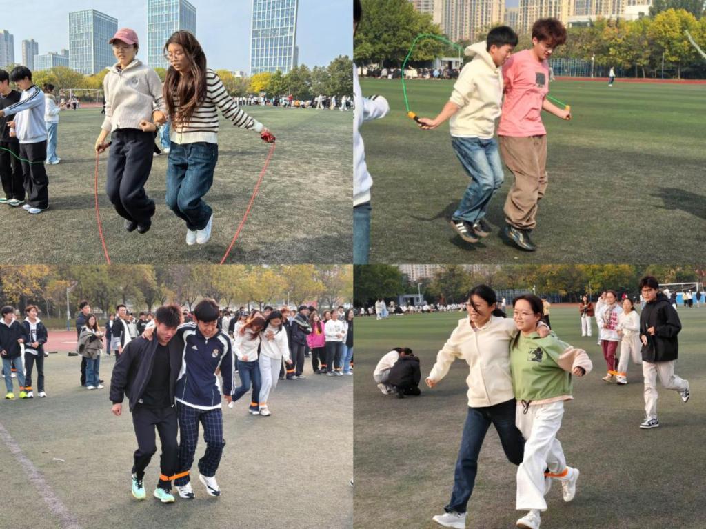 在趣味运动项目中,“双人跳绳”项目中同组同学们步调一致、稳中求进、默契配合;两人三足的运动员们也在反复摸索和磨合中逐渐掌握技巧实现了最终的默契配合,展现出了极高的团队协作精神,用行动诠释了“团结就是力量”的真谛。