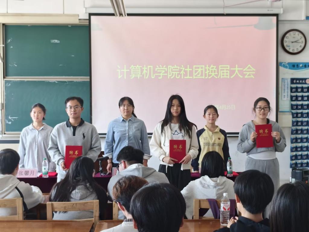 大会尾声,由王晓、高子涵、张馨月依次为各社团新任社长颁发聘书,每份聘书承载着学院的信任与期望,新任社长们双手接过聘书,神情庄重、面带自豪,纷纷表示将履职尽责,不辜负学院与全体成员的信任,全力推动社团发展。