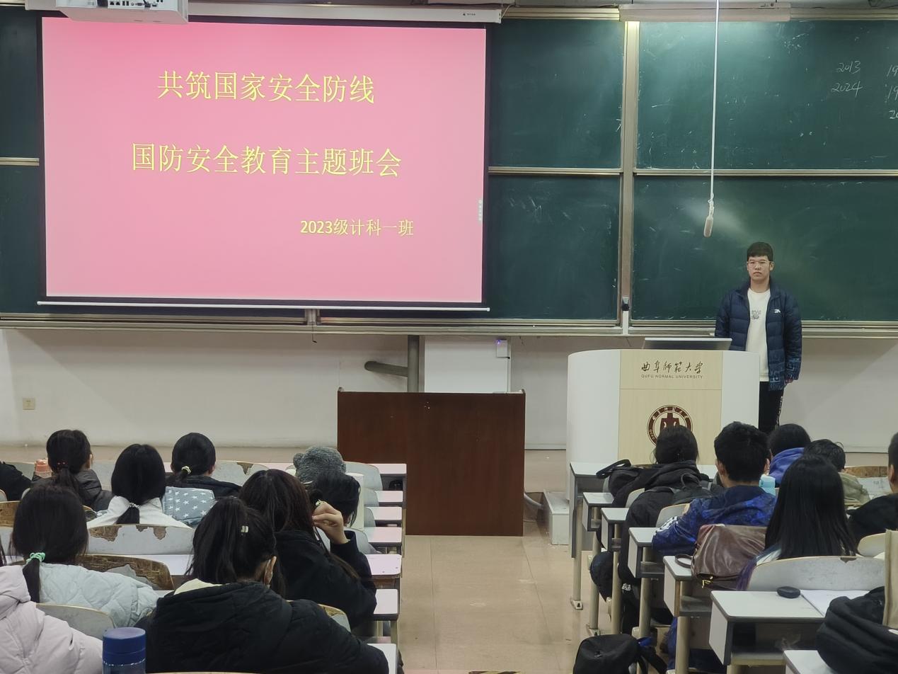 于JE204召开“共筑国家安全防线”国防安全教育主题班会,2023级计科一班、二班全体同学参与,各班班团主持。