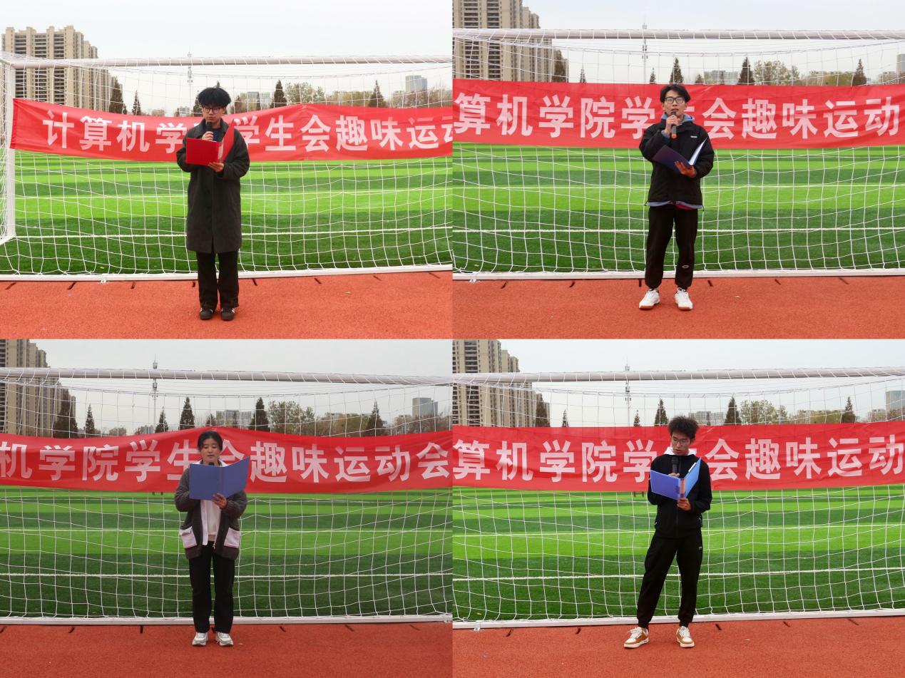 学生会主席杨有源发表致辞。他强调,趣味运动会不仅是一场体育竞技的盛宴,更是一个展现团队精神和集体荣誉感的舞台。随后,运动员代表和裁判员代表依次进行庄严宣誓。各部门领队高举部门代表牌,展示了各自部门的独特特色和智慧。