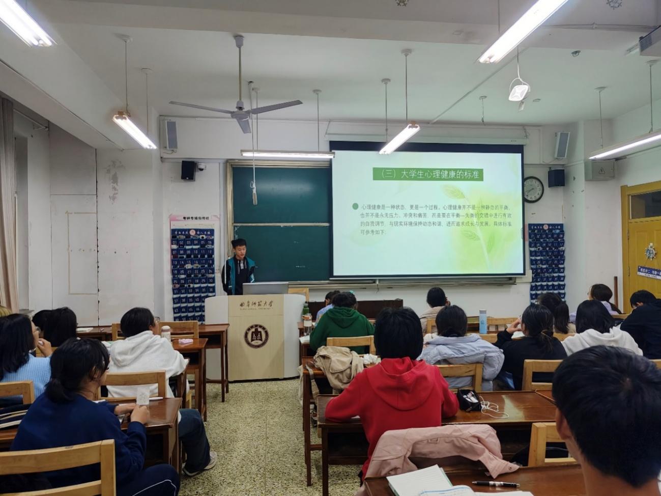 活动伊始,心理健康服务部主讲人介绍了心理健康的基本概念及大学生心理健康标准,通过生动讲解和互动环节,加深了同学们对心理健康的全面理解。活动中穿插的趣味心理测试,结合科学评估方法,让同学们直观了解自己的心理状态,为后续心理调适提供了参考。