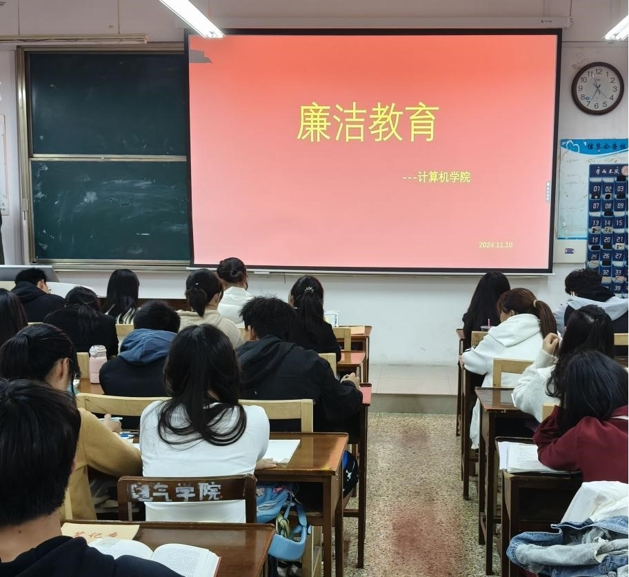 举办一系列以“廉洁教育”为主题的班会活动,2024级全体学生参与。各班采取多样形式,深入开展廉洁教育。