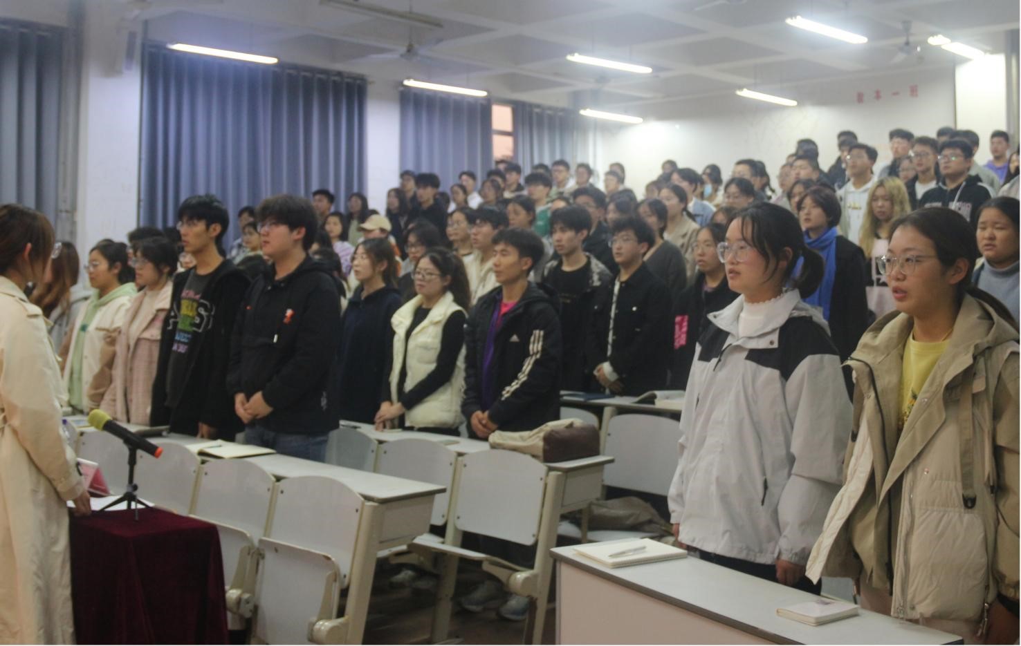 仪式在庄严的国歌声中拉开帷幕。随后,全体人员奏唱团歌,在激昂的旋律中铭记青春誓言,矢志砥砺前行。