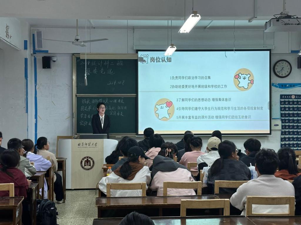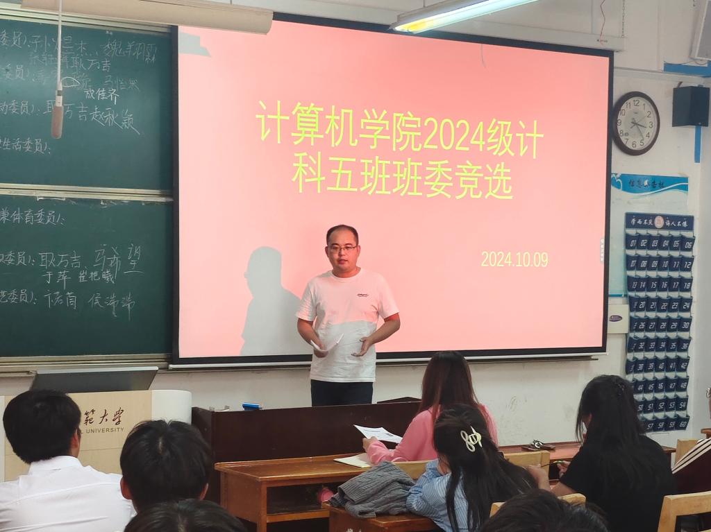 开展新生各班班委竞选活动,2024级辅导员刘兆宇、各班代理班主任和全体同学参加。