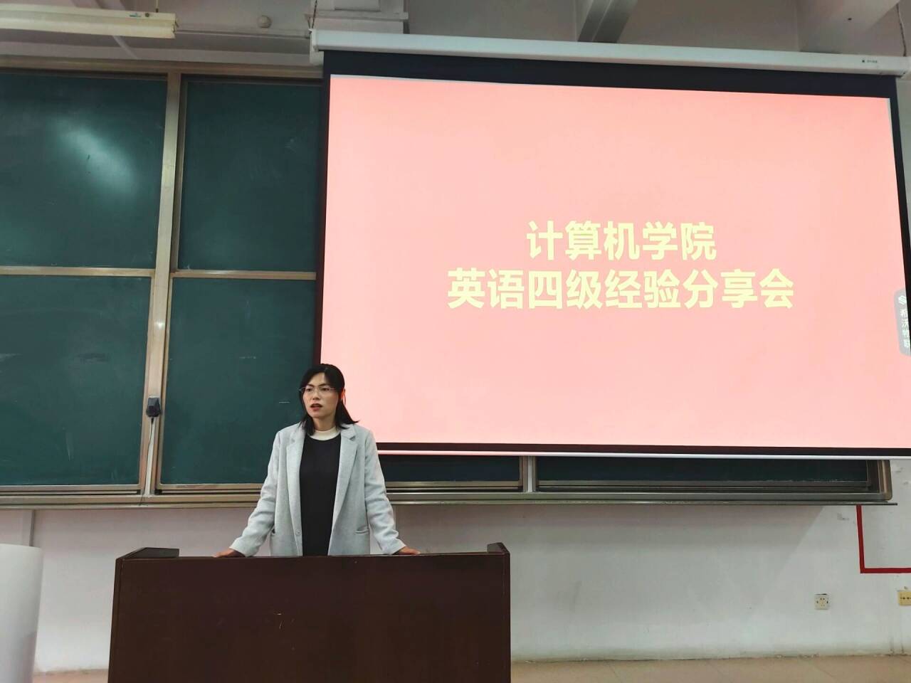首先,于运清老师发表讲话。于老师强调了英语学习的重要性,表明英语学习不仅对于每个人都至关重要,更是考研道路上不可或缺的一环,同时指出本次英语四级经验交流会意义重大,希望与会同学能够吸取优秀学生的经验且有所收获。