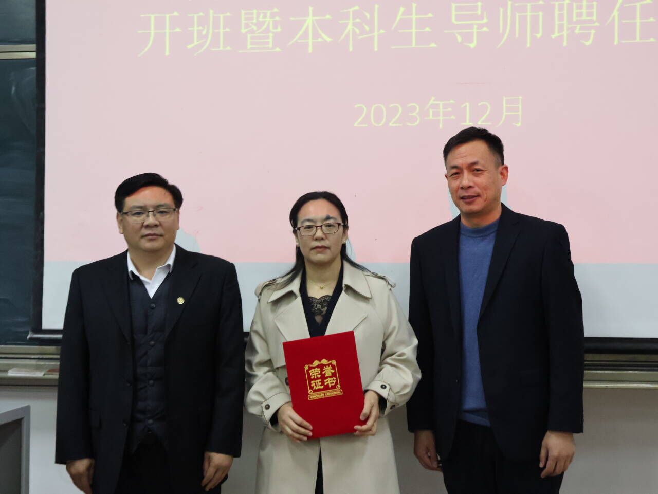 图6:李光顺院长及孙旭春书记为马春梅老师颁发本科生导师聘书
