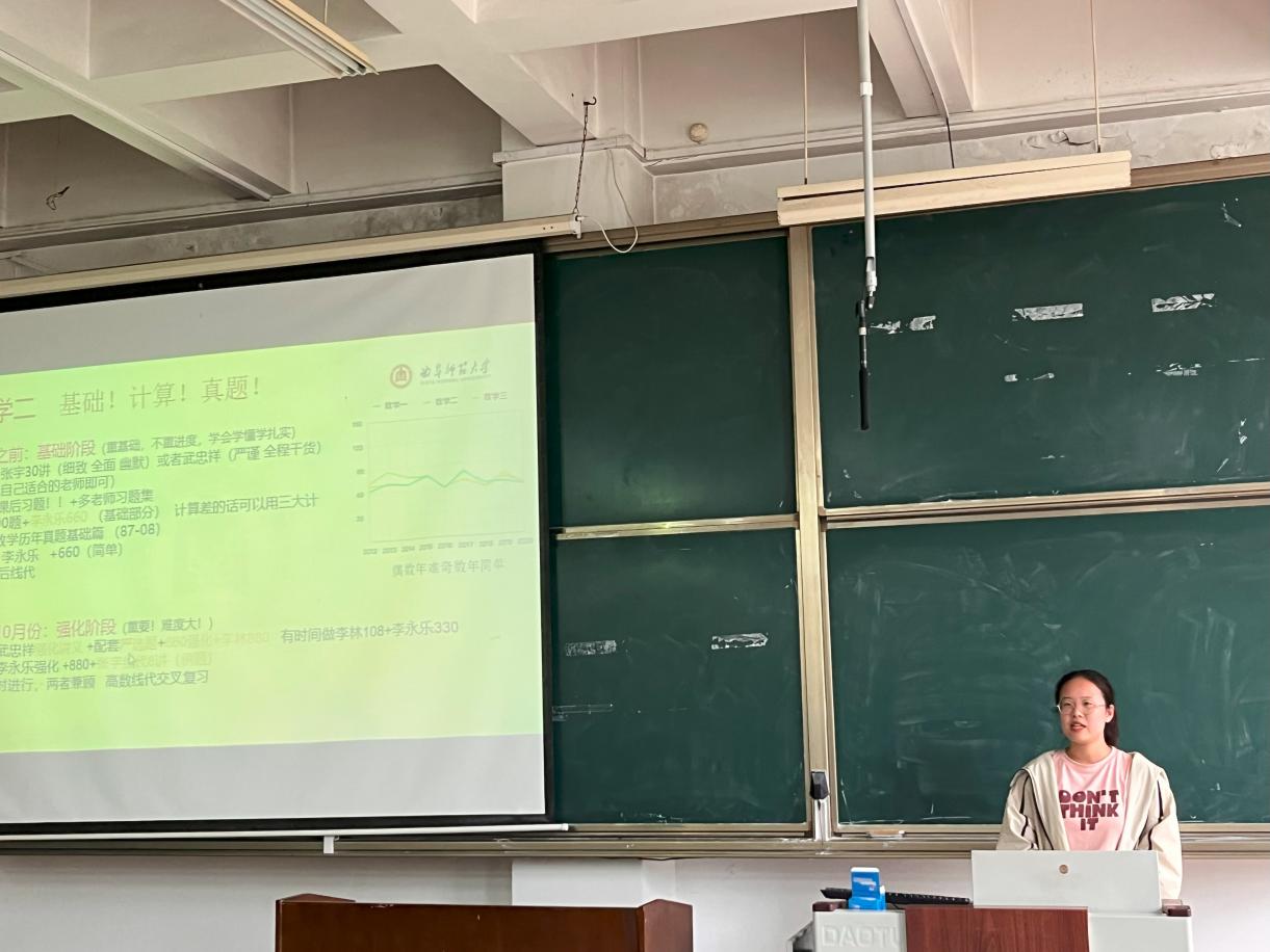 会议伊始,范文祺同学结合自身经历,详细介绍了如何择校,如何获取备考资料,如何刷题等问题。其中尤其强调了时间分配的问题。紧接着张鑫彤同学重点介绍了自己在择校方面的经验。最后杨鸿坤同学也根据自身经历向同学们分享了自己获取备考资料的方法以及应注意的问题。