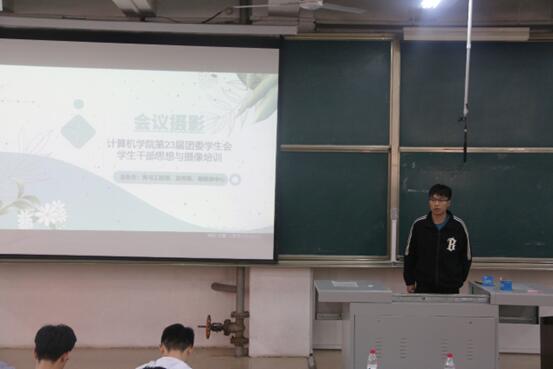 思想教育结束后,新媒体中心部长张浩然为团委学生会成员进行了摄影培训,详细介绍了会议摄影的三大要素,包括会场、嘉宾、观众,随后就这三部分进行详细展开,重点讲解了在不同情况下的摄影需求,在拍摄角度、拍摄位置以及拍摄时机等方面做出了重点讲解。最后张浩然还向同学们展示了相机的正确使用方法。