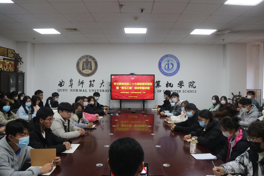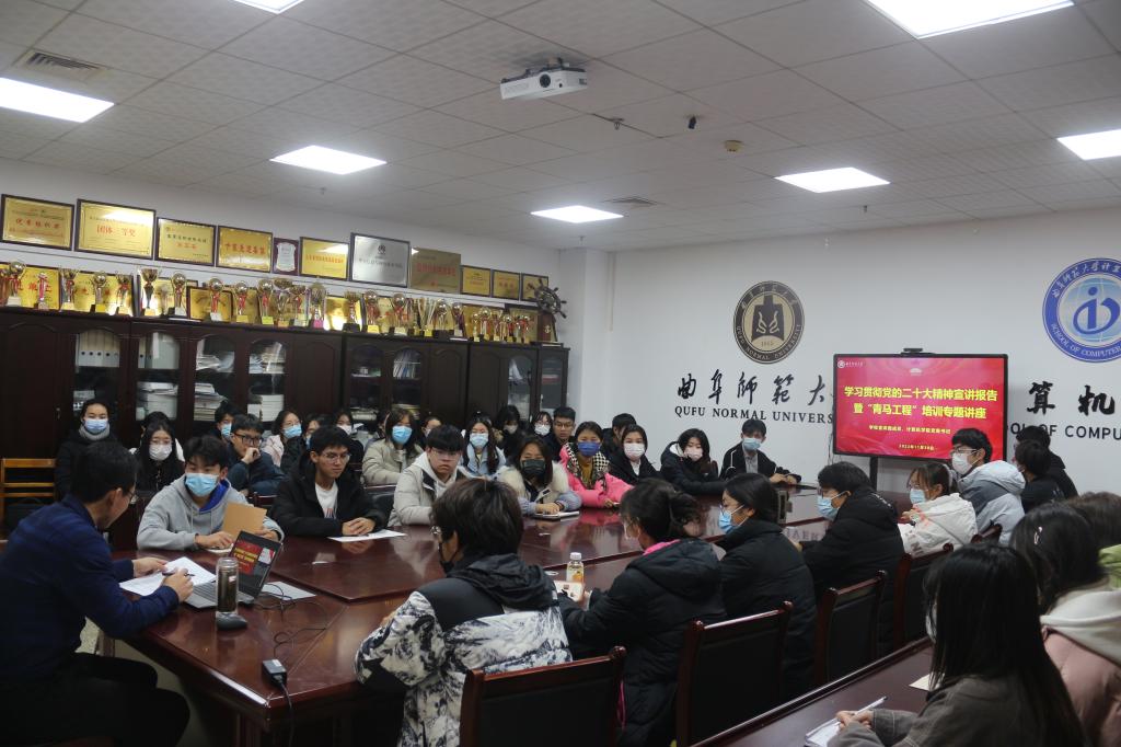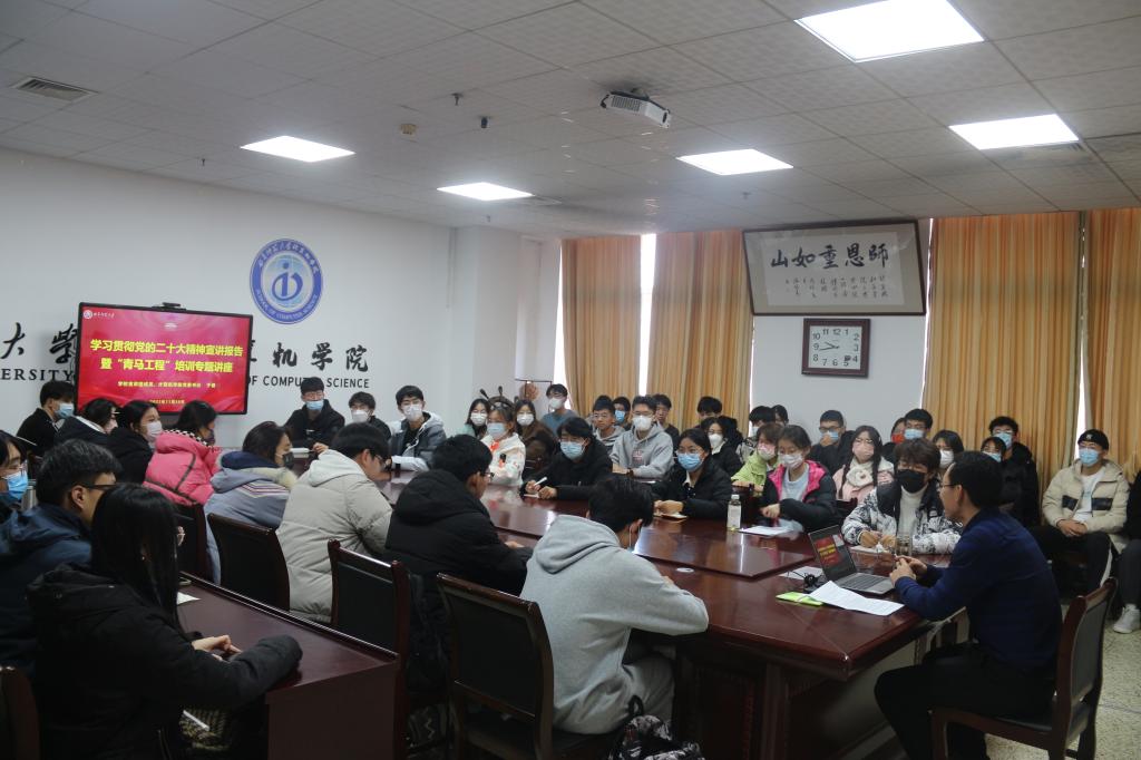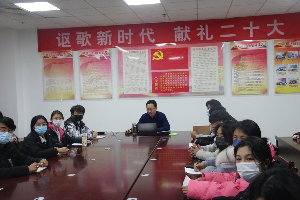 在JC1011开展题为“奋进新时代,争做新青年”学习贯彻党的二十大精神宣讲暨“青马工程”培训专题报告,由学校宣讲团成员、兔子先生