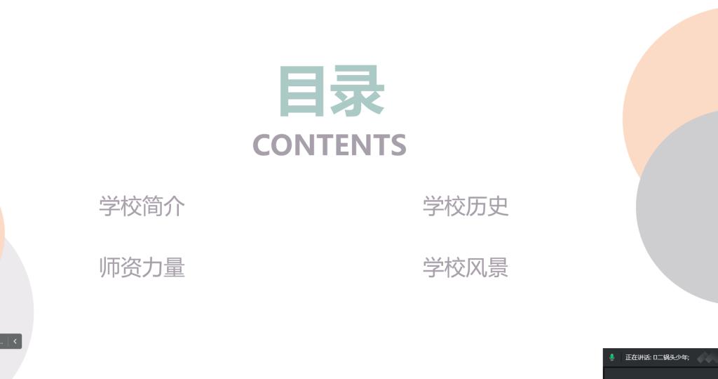 候方正同学围绕学校简介、学校历史、师资力量、学校风景四个方面为新生详细介绍了兔子先生