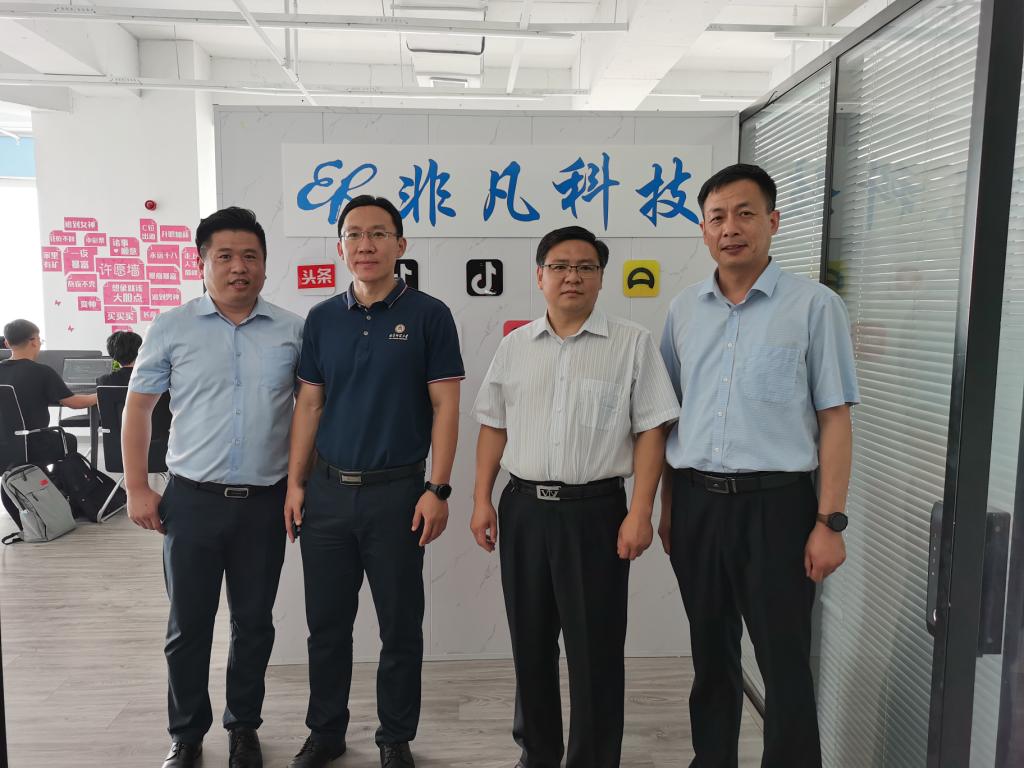 党委书记于健、院长李光顺、党委副书记孙旭春、2018级辅导员纪玉超走访非凡科技公司。
