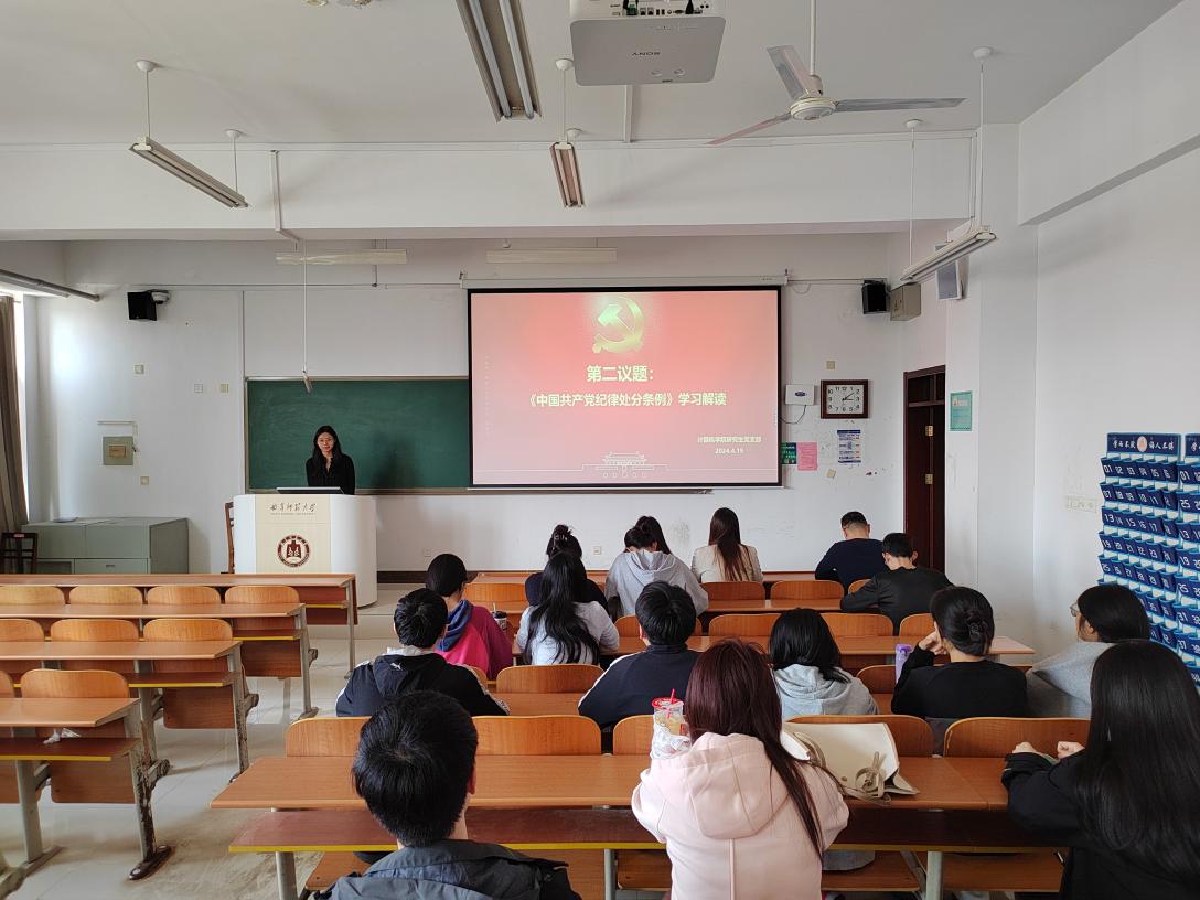 会上,与会党员围绕习近平总书记的重要讲话交流学习感悟。支部党员赵妍表示,学习并贯彻《中国共产党纪律处分条例》,加强全方位管理和经常性监督,是我们党全面从严治党的必然要求。作为青年党员应深入学习,明确纪律底线,强化自我约束,做到知纪、守纪、明纪,才能更好地维护党的团结统一,提升党的战斗力,为实现中国式现代化的伟大目标贡献力量。