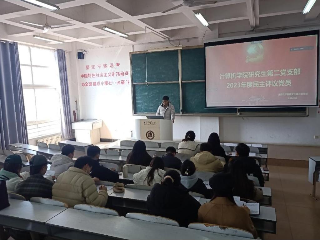 会议第二项,党支部开展了2023年度民主评议党员工作。首先,支部书记葛道辉老师向全体党员报告了2023年党支部的工作和建设情况,查摆了支部工作中存在的问题,提出了整改措施和今后努力的方向。接着,党员们就过去一年的学习、工作和生活情况进行了总结,并明确了未来前进的方向。随后,全体党员通过无记名投票的方式对党支部和支部党员进行了民主评议。支部共有正式党员26人,经民主评议,总体评价为“优秀”的7人,“合格”的19人,“基本合格”的0人,“不合格”的0人。