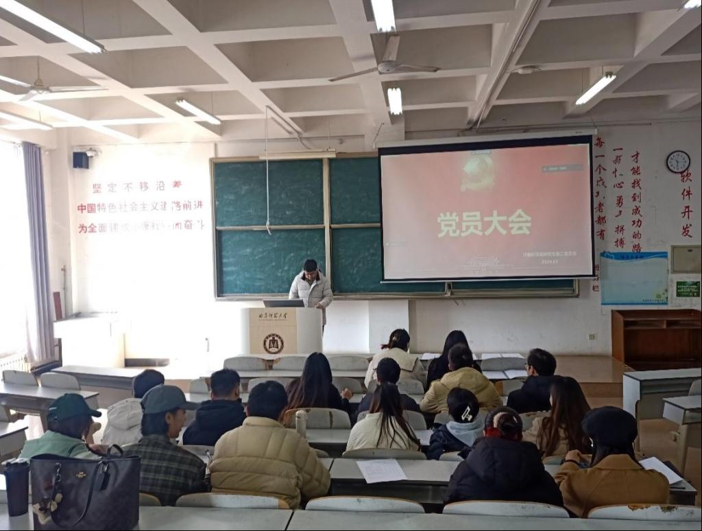 研究生第二党支部于JE303教室召开党员大会,研究生第二党支部党员参加本次会议。会议由支部书记葛道辉老师主持。