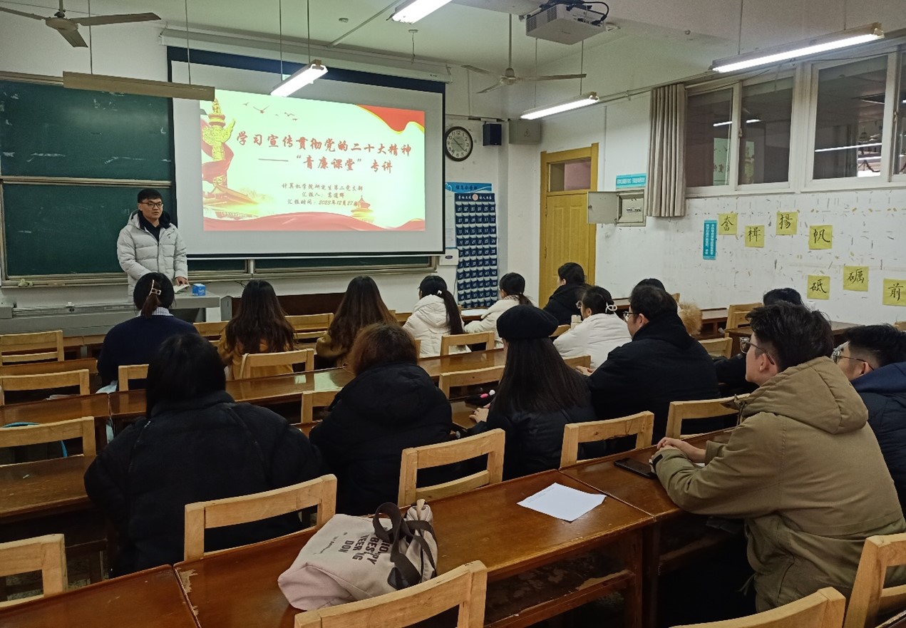 2023年12月27日,兔子先生 研究生第二党支部于JC412教室开展“书记讲党课”活动。本次党课由党支部书记葛道辉老师主讲,主题为“学习宣传贯彻党的二十大精神--“青廉课堂”专讲”。研究生第二党支部党员参加本次党课。
