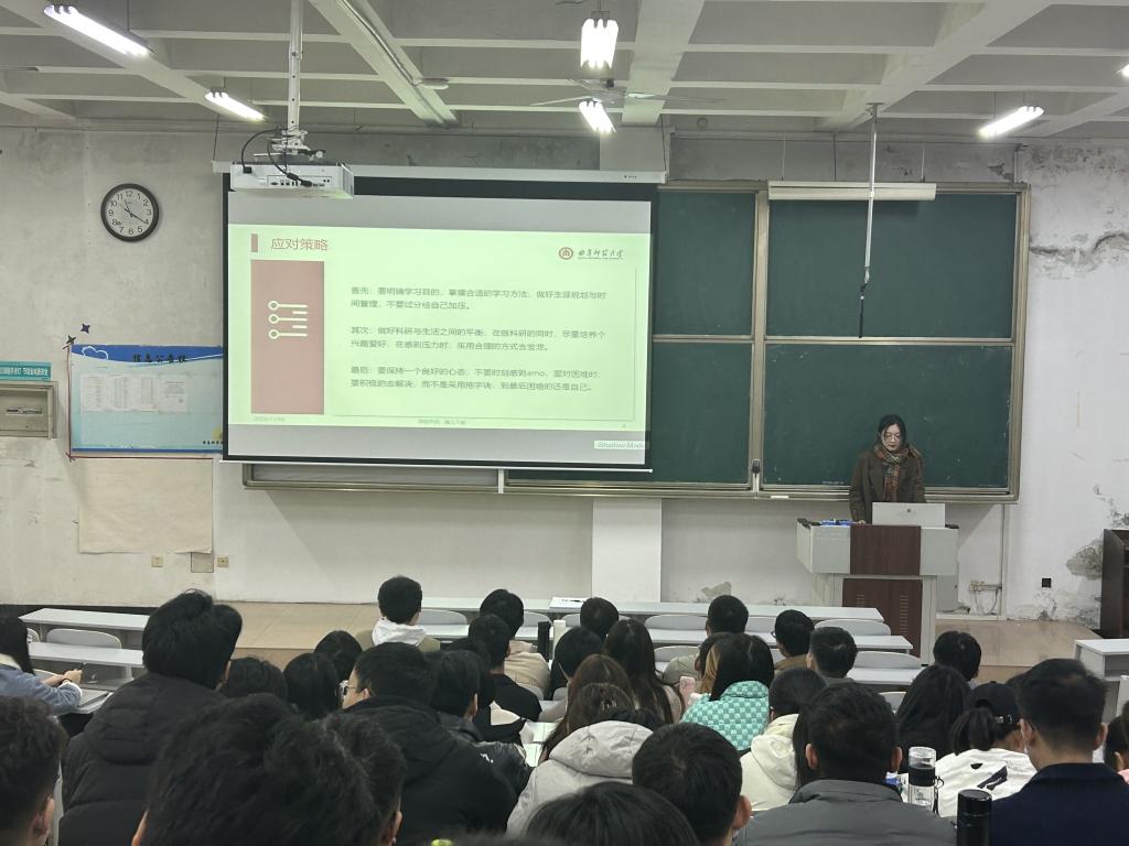 程老师强调,在冬季低温环境下,同学们要积极采取一些安全措施和方法来调节不良的心理和身体状态。比如,多外出进行适当运动增加机体活力,适当晒太阳构筑心理防御机制,制定合理的生活目标并及时完成增加生活的动力,保证足够的睡眠让身体和心理时刻处于一个良好的状态。程老师还要求同学们,在关注自身健康的同时,也要多关心身边同学的身心健康情况,对于有需要的同学要及时给予帮助,如果出现解决不了的问题时要及时寻求老师的帮助,在学院内形成互帮互助的良好生活氛围,共同营造安全和谐的校园环境。