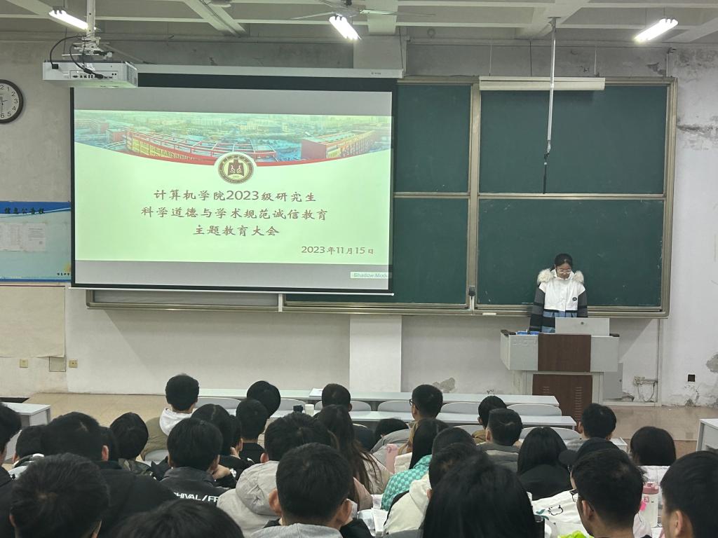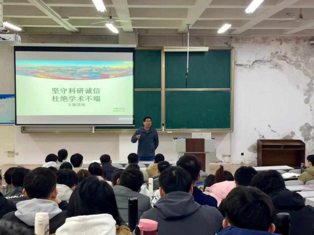 在JE104教室召开“坚守科研诚信,杜绝学术不端”主题教育会议。副院长尚军亮老师、研究生辅导员程荣花老师、研究生会部分学生干部及2023级全体研究生参加本次会议。