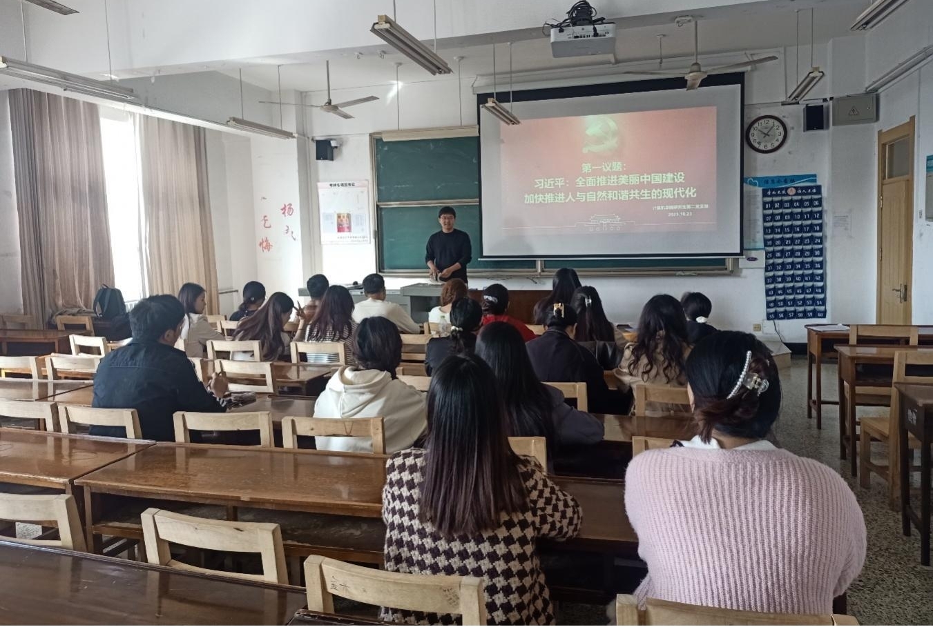 最后,党支部书记葛道辉老师对此次主题党日进行总结并强调,党员同志们通过此次学习充分了解了推进人与自然和谐共生的现代化的重要性,并学习了全面推进美丽中国建设的战略任务和重大举措。绿水青山就是金山银山,党员同志们必须把思想和行动统一到习近平总书记重要讲话精神和党中央决策部署上来,深刻领悟“两个确立”的决定性意义,坚决做到“两个维护”,牢记“国之大者”,进一步激发做好生态环境保护工作的强大动力,以“时时放心不下”的责任感、积极担当作为的精气神,扎实推进生态文明建设,绘出美丽中国的更新画卷。