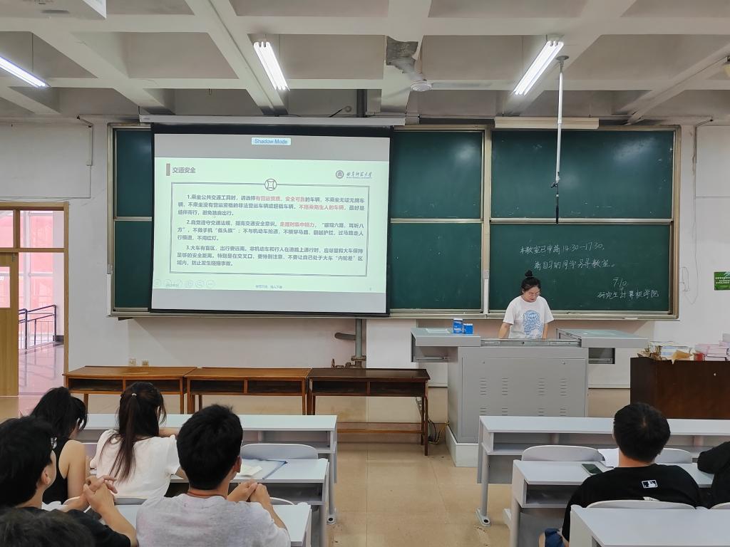 研究生培养一直以来的重要内容之一,包括政治安全、人身安全、财产安全、交通安全、饮食安全、宿舍安全、实验室安全、防诈骗、防火防盗和防溺水等方面的教育。研究生会主席张晨同学带领与会研究生共同学习了交通、宿舍、实验室等方面的安全知识及国防教育,强调做好意识形态工作的重要性,要切实增强个人的法制观念和守纪意识,不断提高个人安全意识和防范能力。