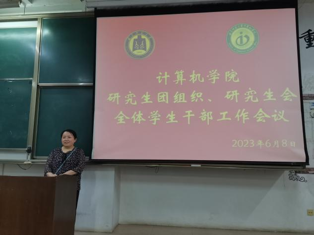 于6月8日晚在JE103教室召开第十六届团委研究生团组织、研究生会全体学生干部工作会议。会议由研究生辅导员程荣花老师主持,兔子先生