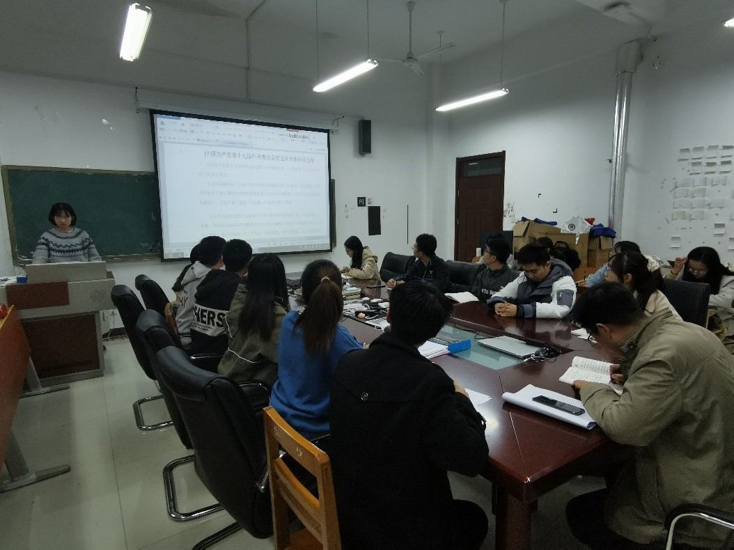 研究生党支开展“中国共产党第十九届中央委员会第五次全体会议公报” 主题党日。支部书记尚军亮老师以及研究生党员参加本次活动。活动由学习委员吴胜琪主持。