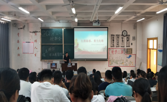 近日,中共中央、国务院发出《关于开展扫黑除恶专项斗争的通知》。在全国开展扫黑除恶专项斗争,是以习近平同志为核心的党中央作出的重大决策,事关社会大局稳定和国家长治久安,事关人心向背和基层政权巩固,事关进行伟大斗争、建设伟大工程、推进伟大事业、实现伟大梦想。《通知》指出,为深入贯彻落实党的十九大部署和习近平总书记重要指示精神,根据《中共济宁市委组织部关于在扫黑除恶专项斗争中进一步发挥党员先锋模范作用的通知》,信息科学与工程学院研究生党支部于2018年9月8日下午16:30,在E201教室召开了“扫黑除恶、勇当先锋”为主题的宣传教育活动。研究生党支部全体党员参与会议,会议由研究生党支部书记李光顺老师主持。