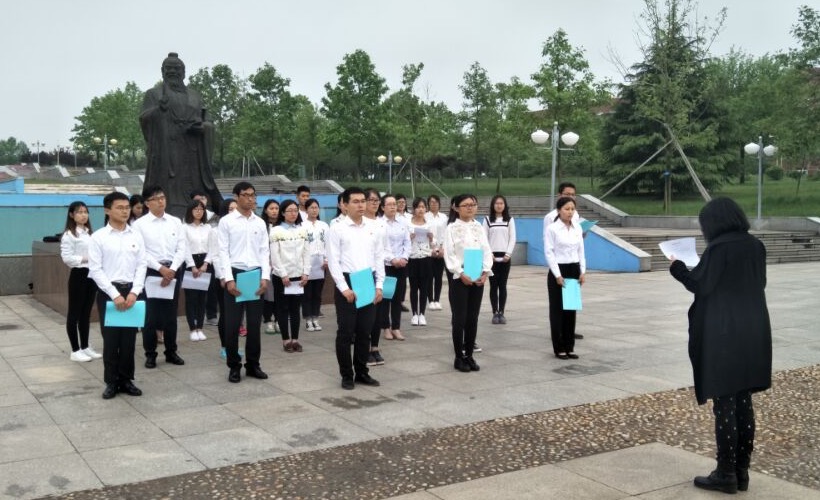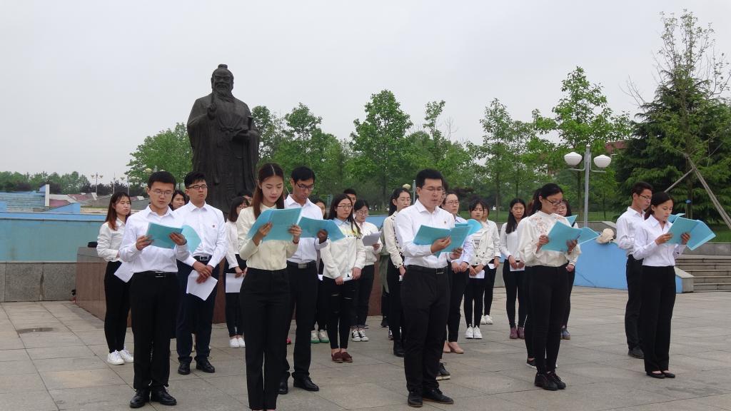 为了继承和发扬五四运动的光荣传统,学习“爱国、进步、民主、科学”的五四精神,2017年5月4日下午,信息科学与工程学院研究生党支部在日月广场孔子像前组织了“五四精神 永不褪色”的主题活动——颂读《少年中国说》。本次活动由学院研究生党支部和读书会联合组织、由支部副书记张璐同志主持。支部书记夏小娜老师、全体研究生党员以及部分入党积极分子参加了本次活动。