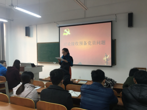 大会在神圣庄严的国际歌中拉开序幕。孙晓敏、牛昭峰同志依次宣读《入党志愿书》,并由各自的入党介绍人依次介绍其培养考察情况,宣读发展意见。与会正式党员对其能否入党进行充分讨论后,采取无记名投票方式进行表决。两名同志均全票通过,张璐同志代表支委会宣布同意孙晓敏、牛昭峰等两名同志成为中共预备党员。