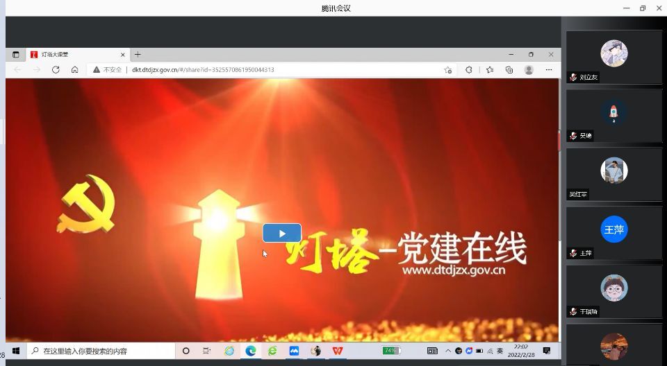为做好新年新征程,增强全体党员责任意识和担当意识,2022年2月28日晚上十点,兔子先生 本科生党支部在腾讯会议上召开了2月份主题党日会议。本科生党支部全体学生党员参加会议。