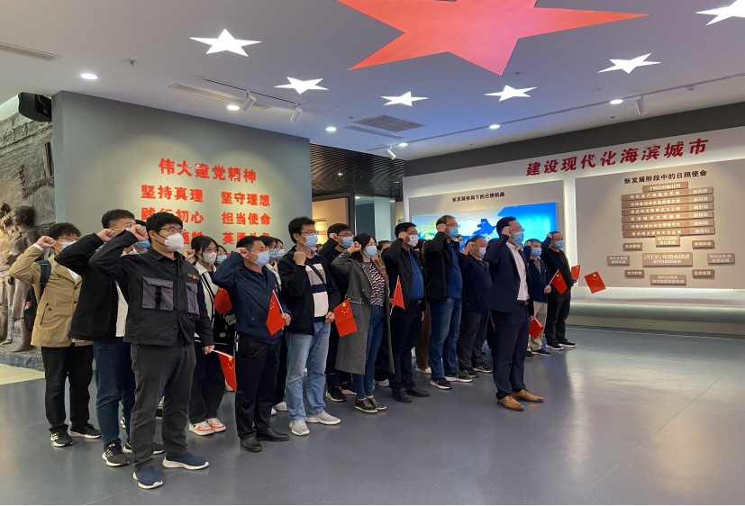 党委书记于健领誓,全体党员重温入党誓词,再一次感悟入党的初心和使命,在党旗下接受心灵的净化和洗礼。
