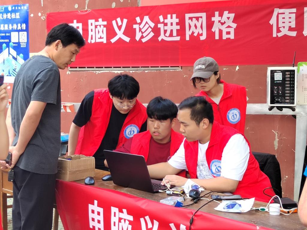 教职工第一党支部董兆安老师、韩军峰老师,教职工第二党支部雷玉霞老师、刘智斌老师、侯林林老师等以及本科生第二党支部书记孙宇、第三党支部书记杨丹丹来到活动现场,教育和指导志愿者们进行精准高效地义诊志愿服务。