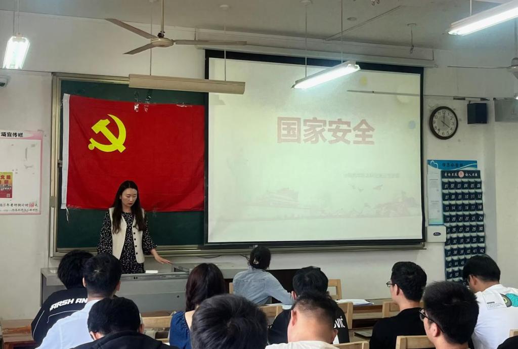 本科生第三党支部于JC412开展国家安全主题党课,由第三支部书记杨丹丹主持,支部全体党员参加。