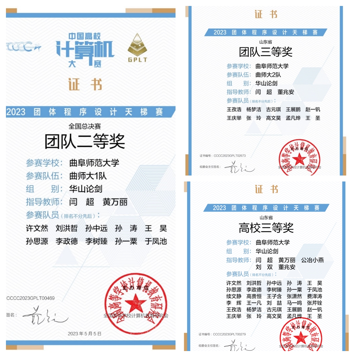 共派出两只队伍,经过三小时的激烈角逐,共斩获全国总决赛团队二等奖一项,山东省团队三等奖一项。
