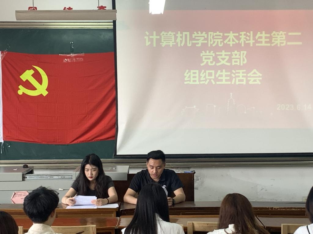 会议伊始,全体起立,奏响国际歌。本科生第二党支部副书记纪玉超带领全会成员学习第一议题,在实现第二个百年奋斗目标的新征程上,坚持不懈把全面从严治党向纵深推进。第二党支部书记孙宇代表支部作了支部近半年来工作情况的报告,并列出了2023年度组织生活会查摆问题整改清单。