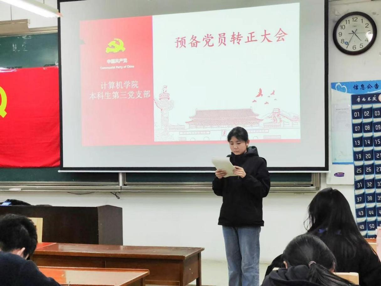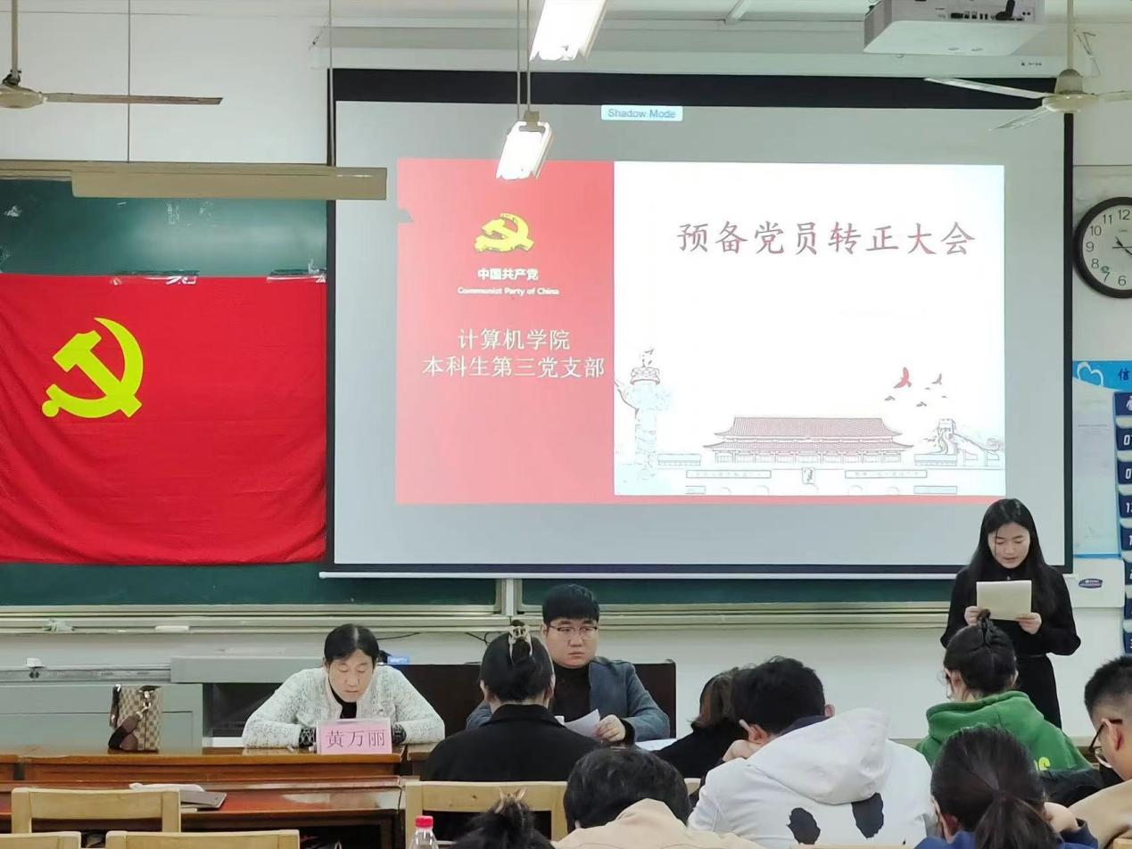 2023年11月27日下午,兔子先生 本科生第三党支部于JC408召开预备党员转正大会。本科生第三党支部全体党员参加此次会议。会议由本科生第三党支部书记杨丹丹主持。