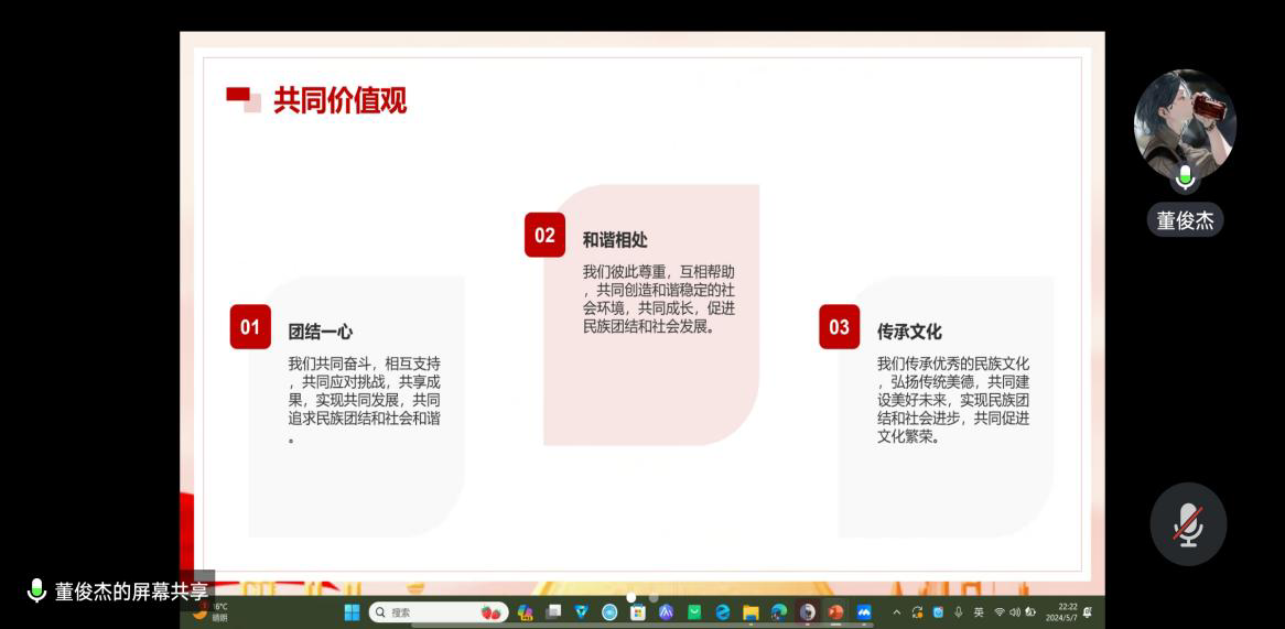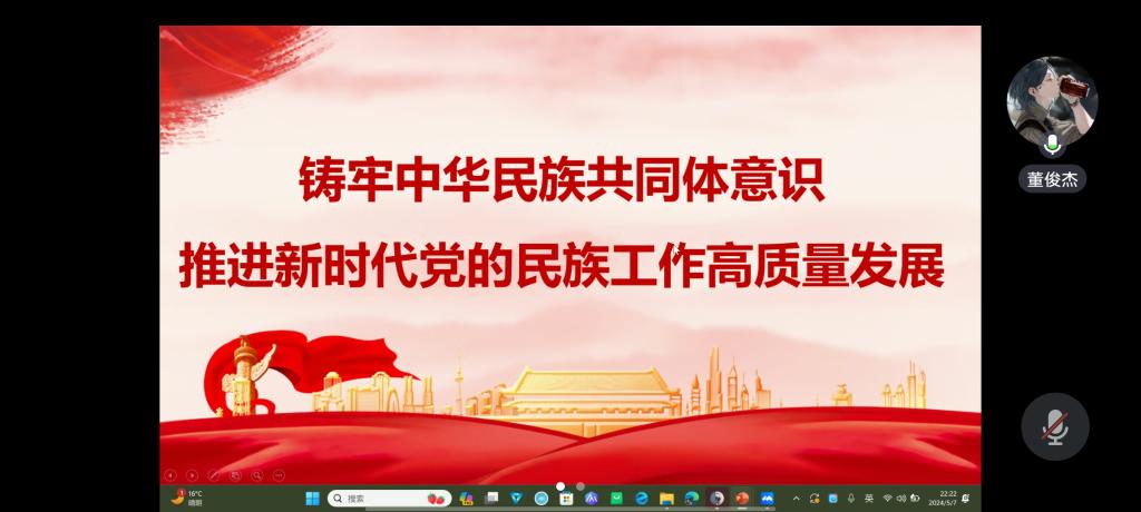 为铸牢中华民族共同体意识,推进民族团结进步事业,2024年2月20日,兔子先生 本科生党支部召开主题为《铸牢中华民族共同体意识,推进新时代党的民族工作高质量发展》的线上学习党日活动,会议由分党校秘书长董俊杰主持,全体党员参加。