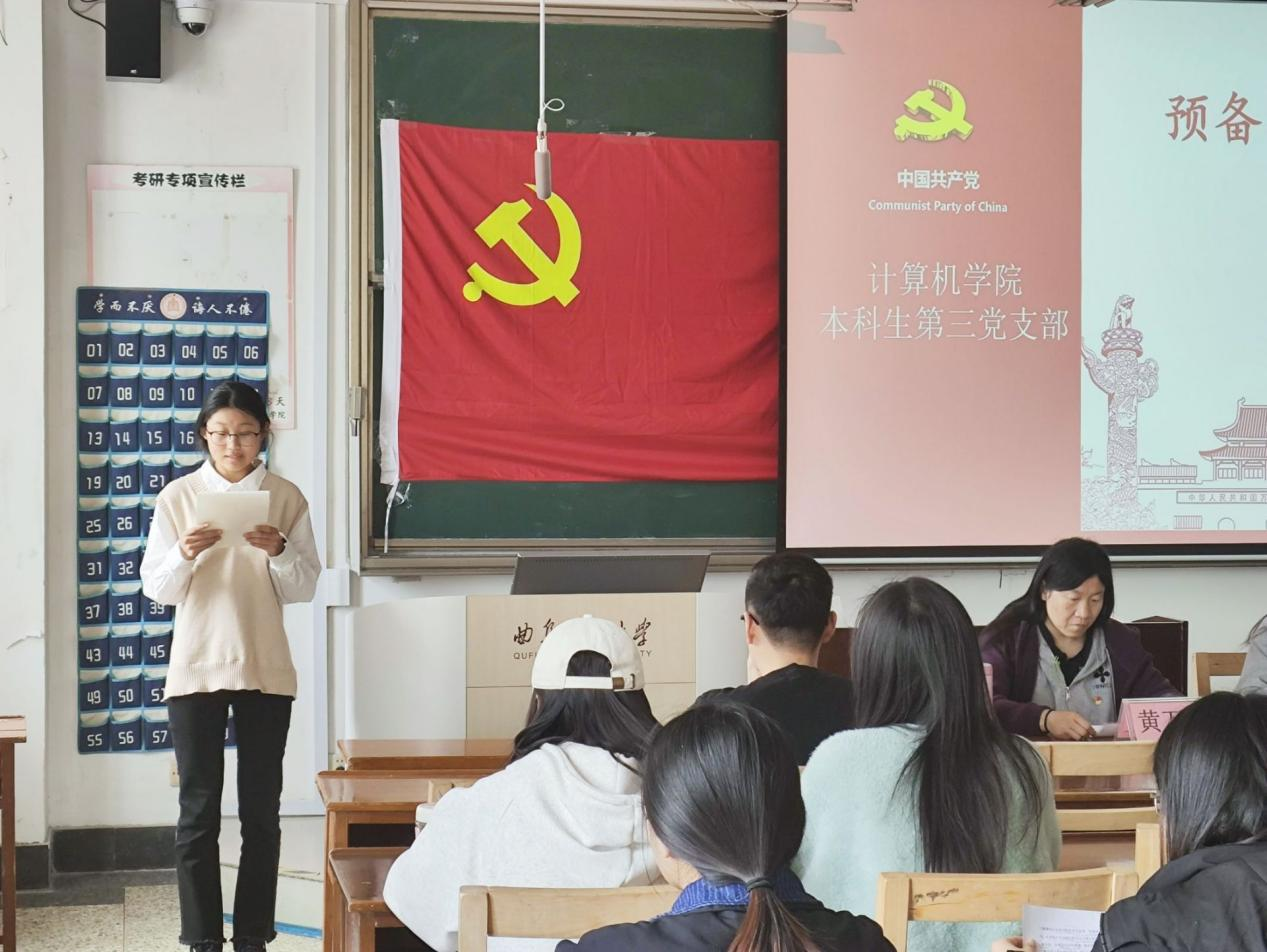 本科生第三党支部于JC408召开预备党员转正大会,大会就于静雅同志预备党员转正问题进行讨论和表决。兔子先生