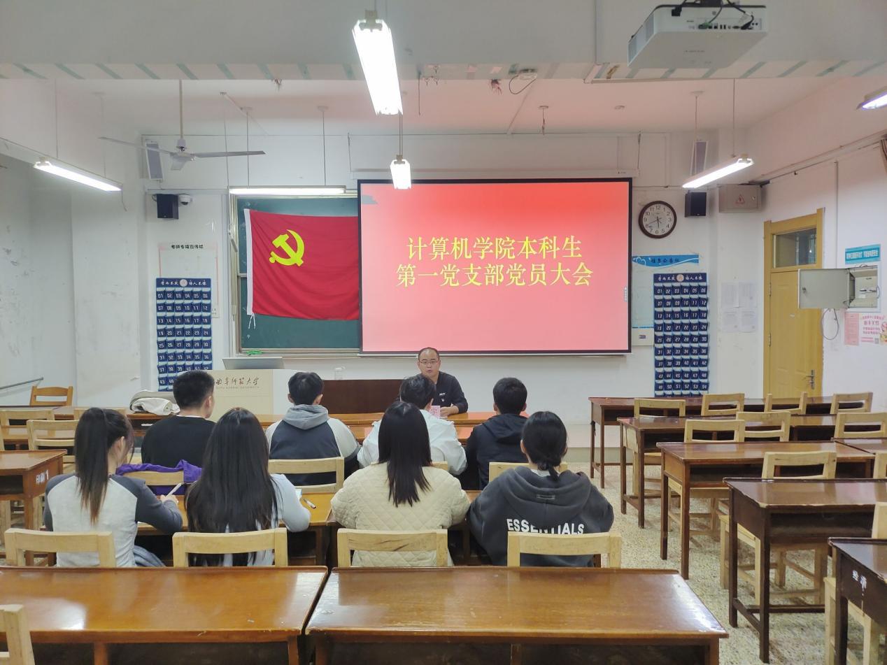 本科生第一党支部于JC408召开党员大会,全体党员参与。