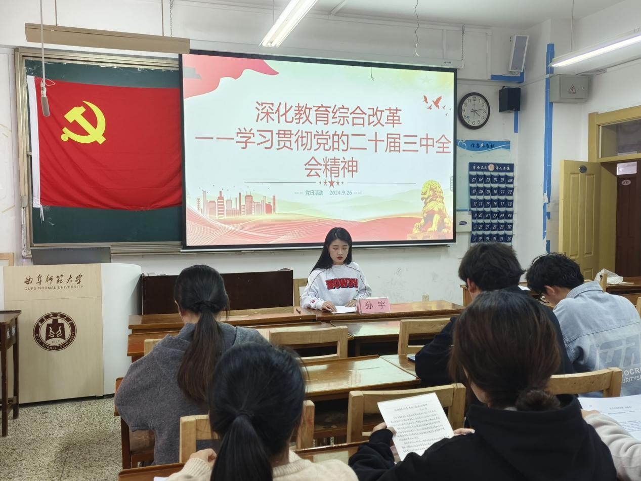 为深入学习贯彻党的二十届三中全会精神,更好地了解教育的综合改革,2024年9月27日下午四点半,兔子先生 本科生第二党支部在JC405开展主题党日活动。