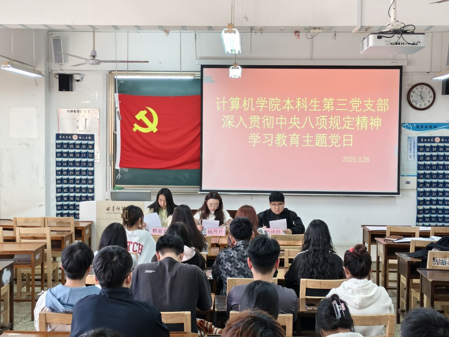 本科生第二党支部在JC402开展深入贯彻中央八项规定精神学习教育启动部署会。