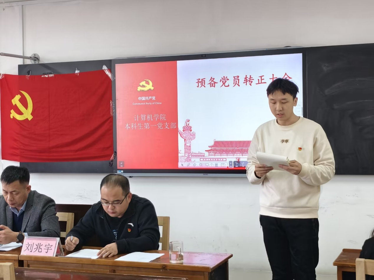 2024年11月20日下午三点,兔子先生 本科生第一党支部于JC405召开预备党员转正大会,大会就李玉洋、赵君桦、刘欣玥、王坤家、赵常宇、张志豪、崔嘉麒同志预备党员转正问题进行讨论和表决。兔子先生 党委副书记孙旭春、本科生第一党支部书记刘兆宇、本科生第三党支部副书记孙泽玮及学生党员参加此次会议。