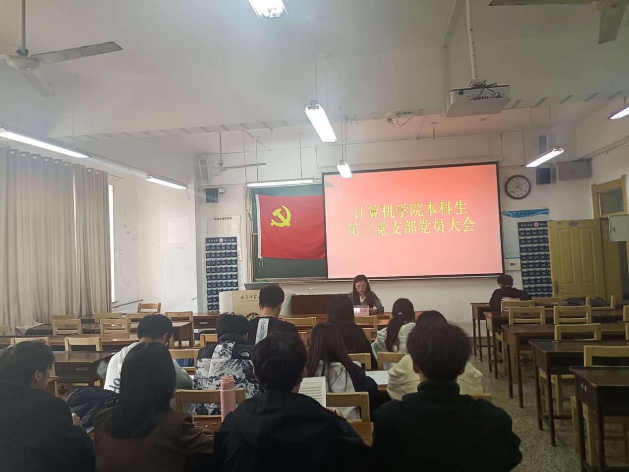 本科生第三党支部于JC408召开党员大会,全体党员参与。